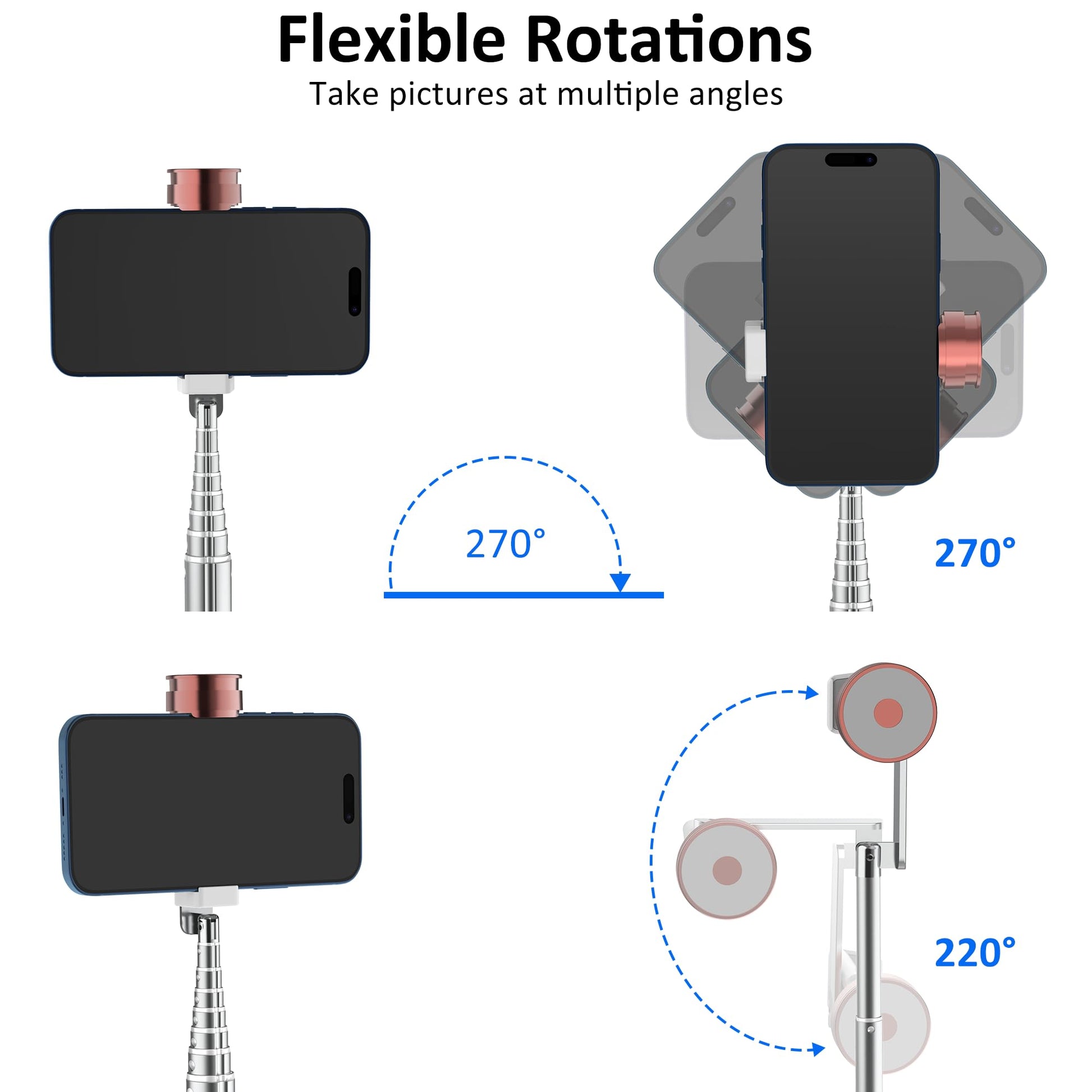 - EXTENDABLE & ROTATABLE - The whole stick can be extended to 33 inches to adapt to different shooting purposes. tripod selfie stick has an adjustable 220° rotation bracket, a 270° rotatable phone holder, and a steady tripod for the best viewing angle.