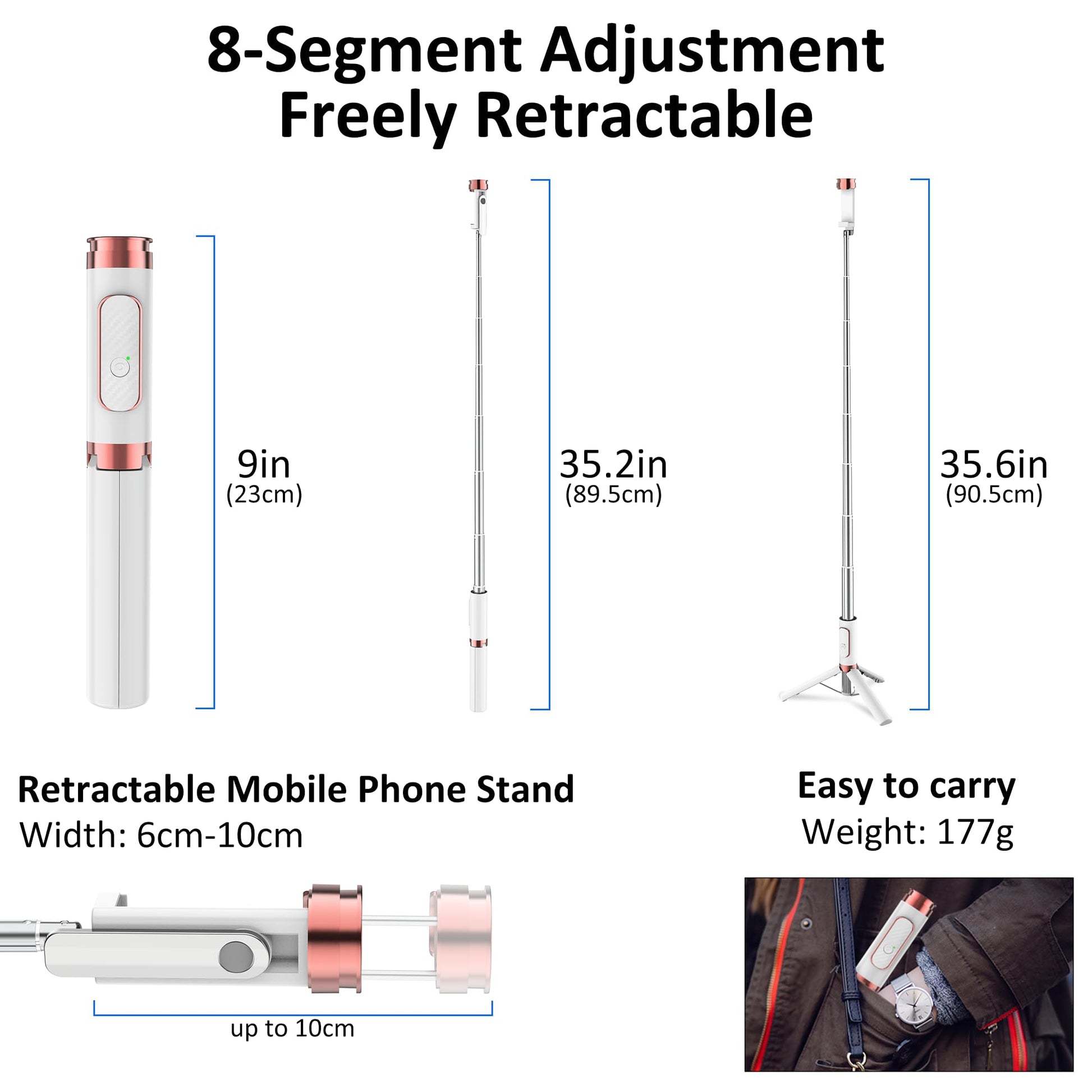 - BLUETOOTH REMOTE ATTACHED - This selfie stick tripod comes with a magnetic remote control, allowing you to record videos, take photos, and group shooting more conveniently. Perfect for content creators such as TikToker, Youtuber, and Vloggers. Also suitable for travelers.