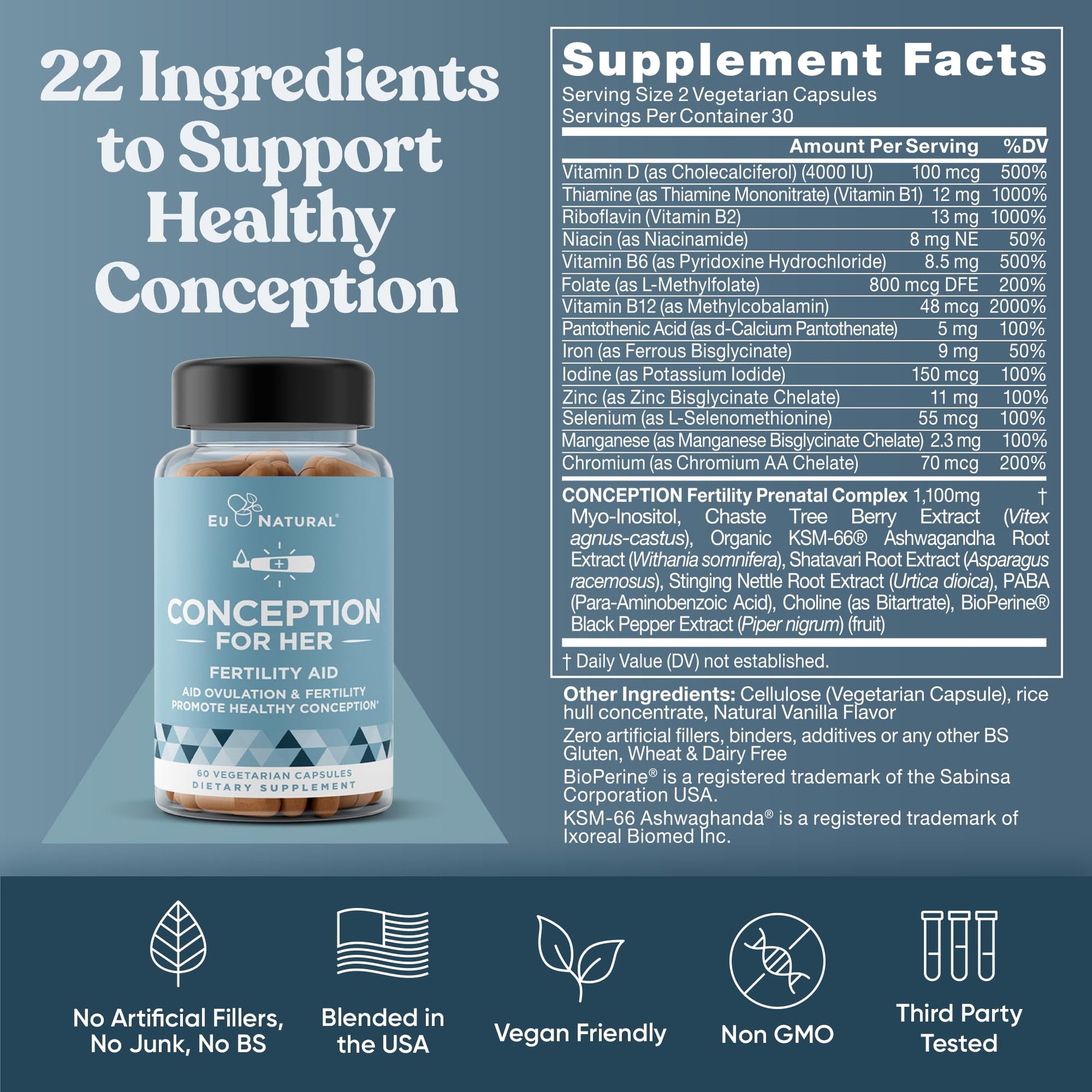 - CONTAINS CONCEPTION: Vitex, Myo-Inositol, and the other powerful ingredients in the CONCEPTION fertility blend give the female reproductive system the hormonal balancing it needs to help regulate menstrual cycles, aid ovulation, and promote a healthy conception