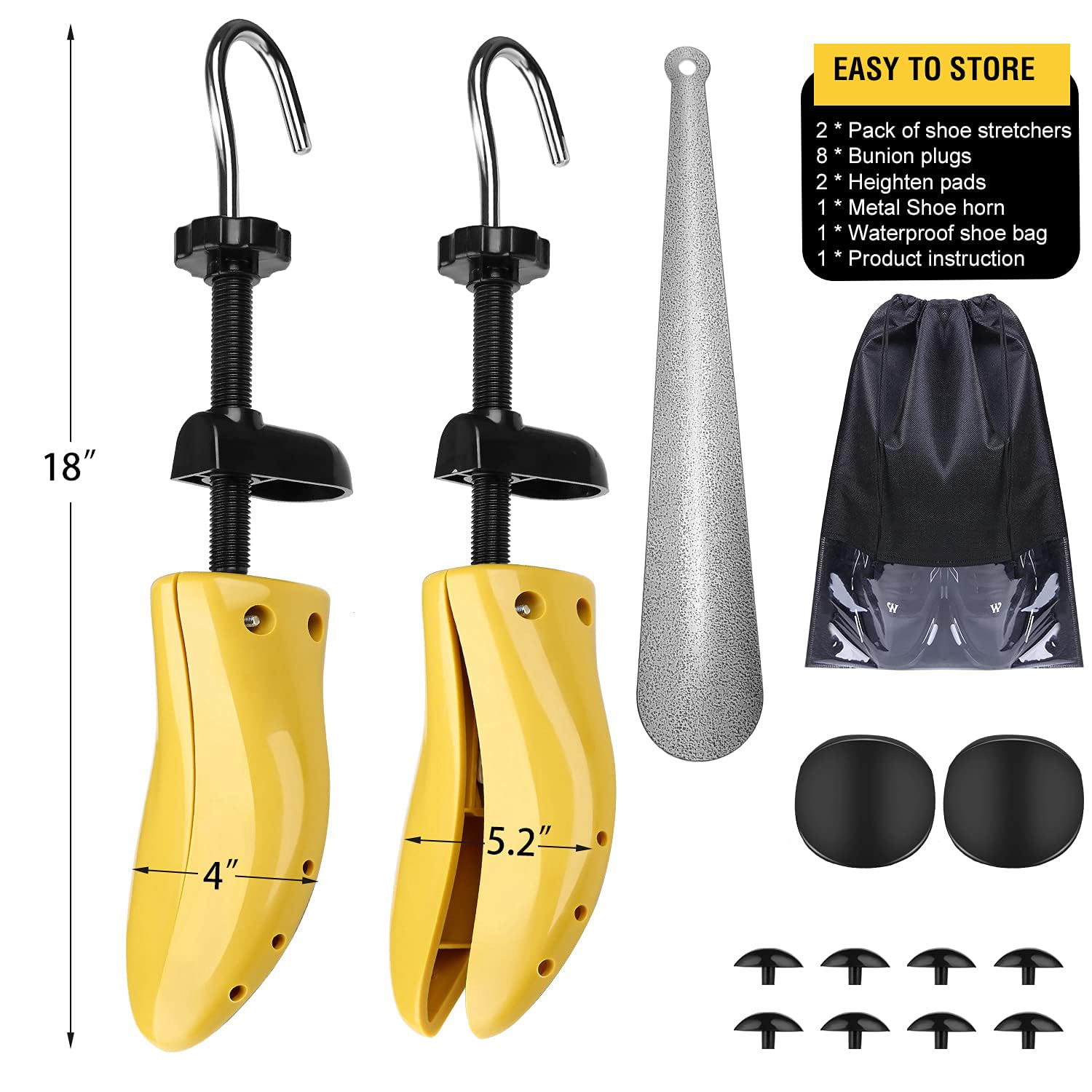 - 【PROFESSIONAL DESIGN,THE BEST POSSIBLE MATERIALS 】eachway shoe stretchers are made out of premium ABS plastic material with a strong steel shaft. STRONG and DURABLE! it has a long service time for 10 years.shoe expander set suitable for two pairs of shoes, it comes in a beautiful packaging, with each pair coming with its own canvas shoe bag that can further help keep your footwear protected from dust and moisture