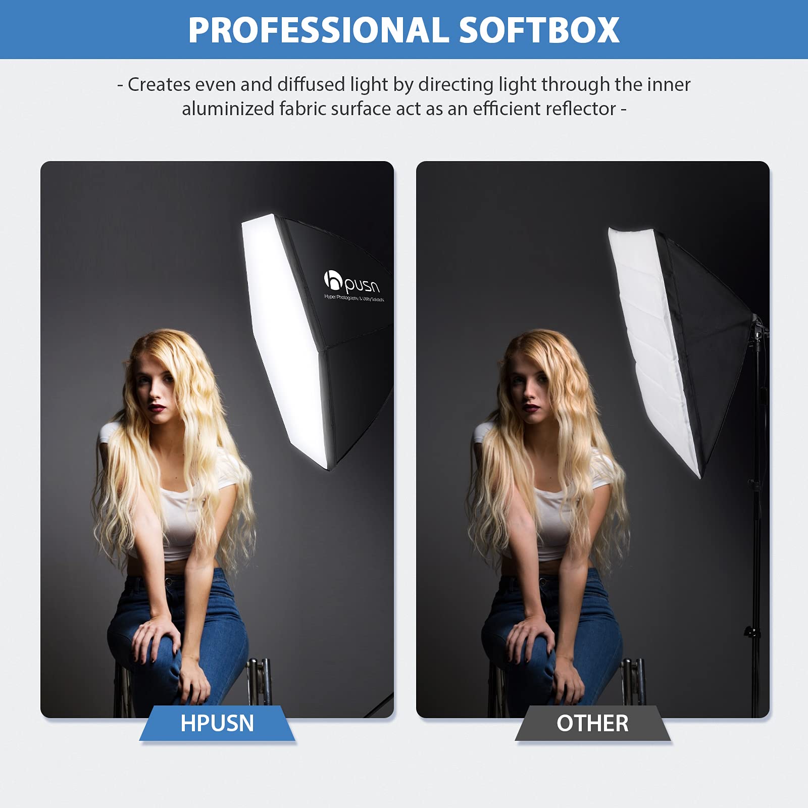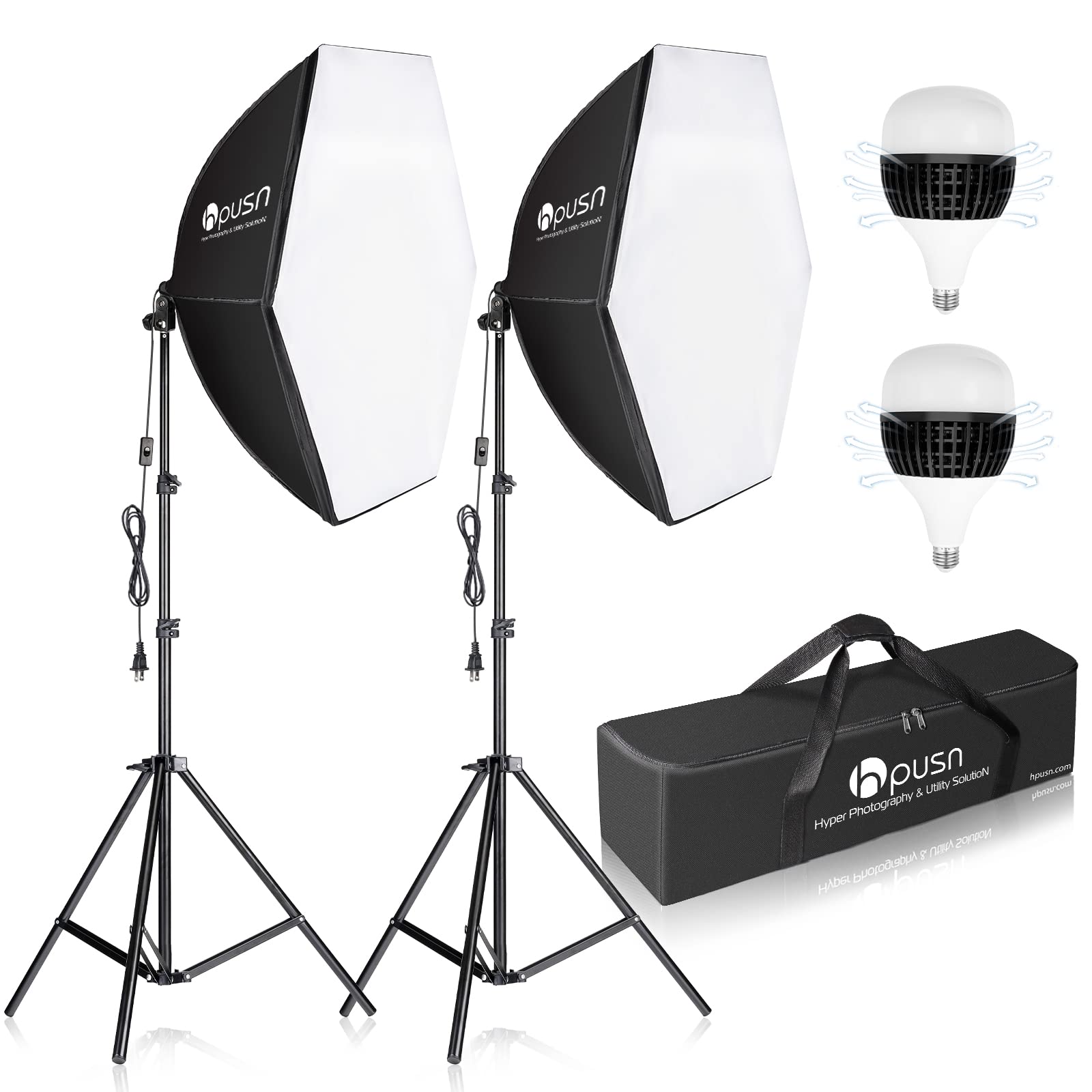 HPUSN Softbox Photography Lighting Kit 30"X30" Professional Continuous Lighting System Photo Studio Equipment with 2pcs E27 Socket 5400K Bulbs for Portraits Advertising Shooting YouTube Video
