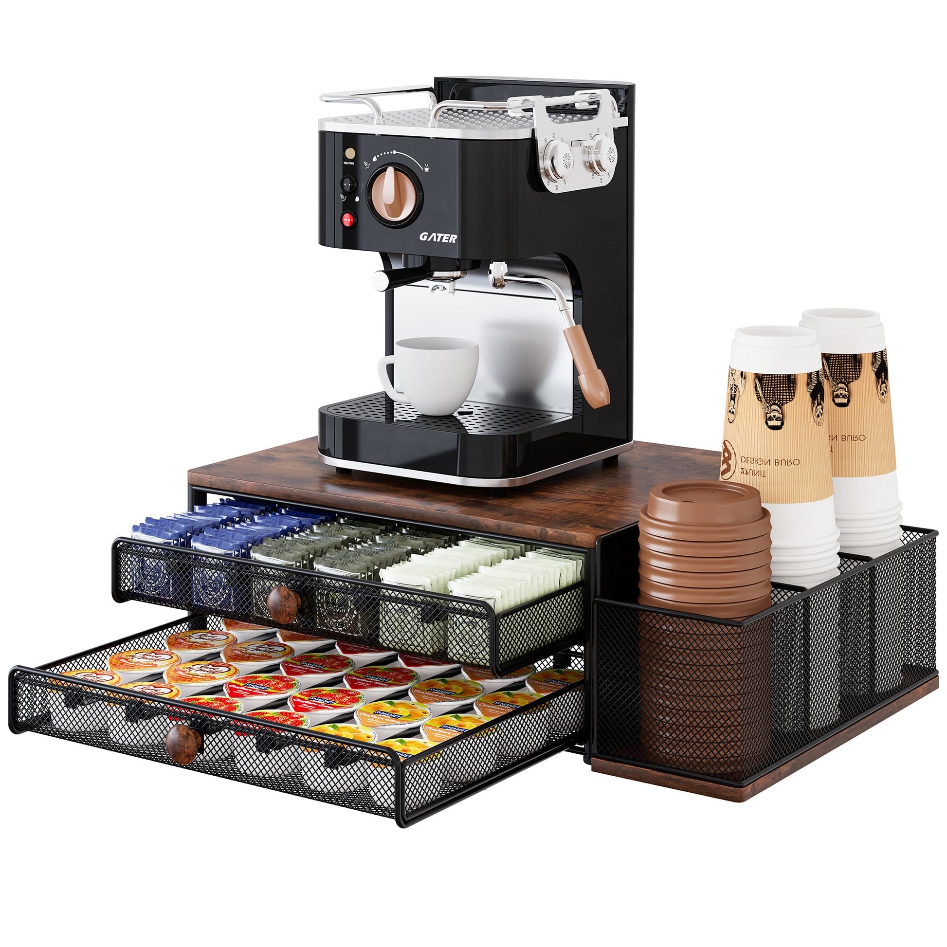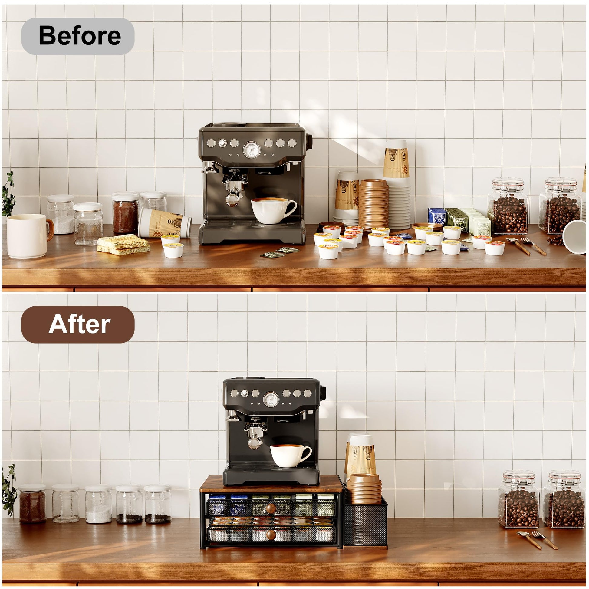 - 【ADJUSTABLE DIVIDERS】: Unlike traditional fixed-width coffee drawers, our k cup holder features adjustable dividers, allowing you to customize the storage space according to your needs. This flexible design enables you to store various pod sizes, and you can even remove the dividers to create a larger single-space drawer for storing tea bags, sugar packets, instant coffee packets, and other coffee essentials. It's a versatile and practical solution for your coffee organization