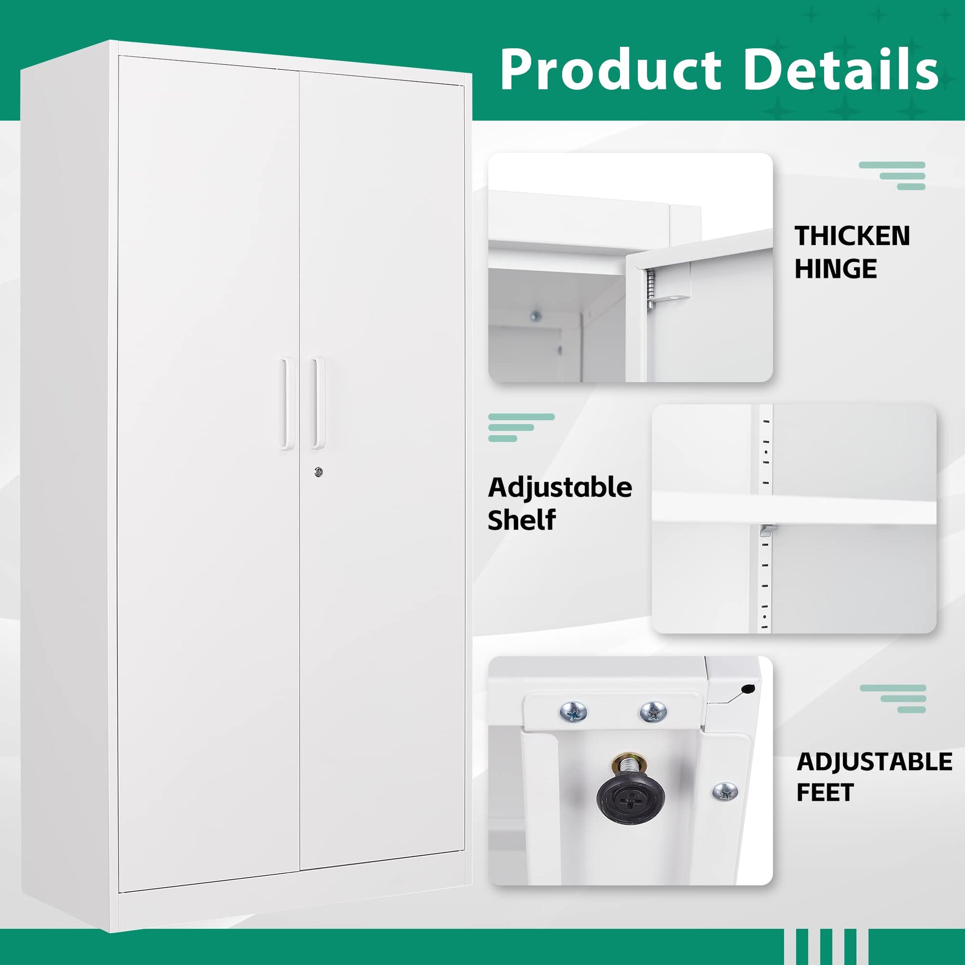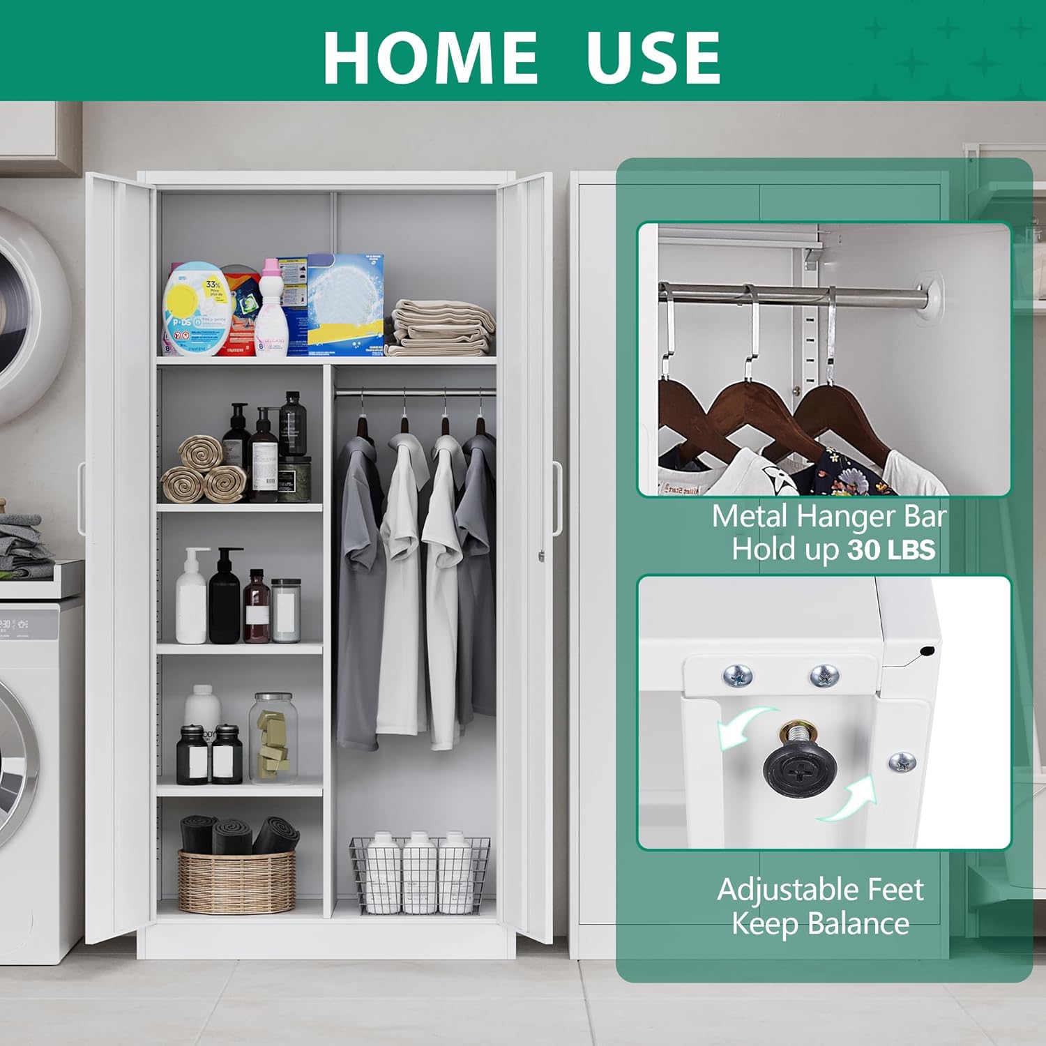 - Larger Storage Space:Storage Cabinet Size: 72"H x 36"W x 18"D. Metal Storage Cabinet with adjustable Shelves and Hanging Rod,hang your clothes and DIY locker
