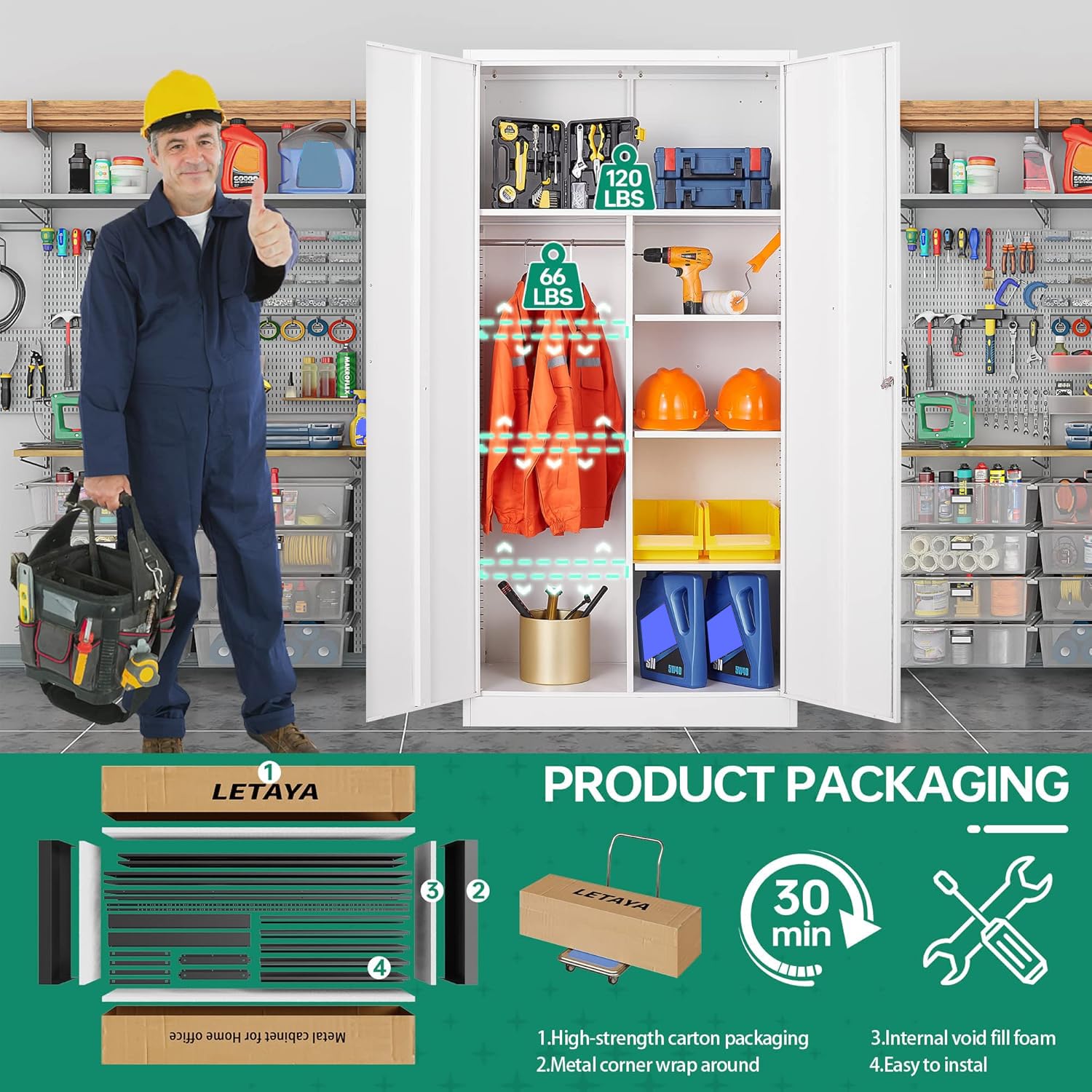 - Upgraded Materials:Letaya metal storage cabinet is made of 0.8mm reinforced full-steel frame construction, plate adopted environmentally powder coated finish, capacity to resist corrosion and rust,more durable than wood cabinets