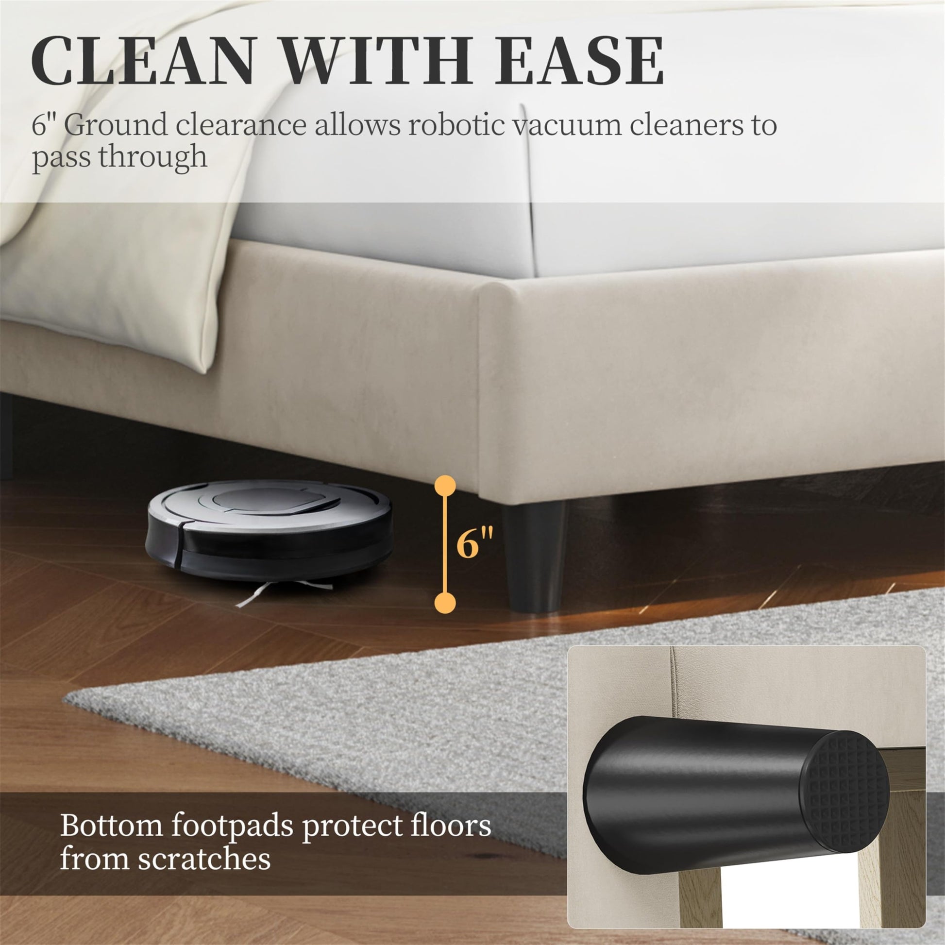 - Reasonable Under-bed Space: 6" ground clearance allows vacuum cleaning robots to pass through easily, making cleaning this queen bed frame a breeze for you