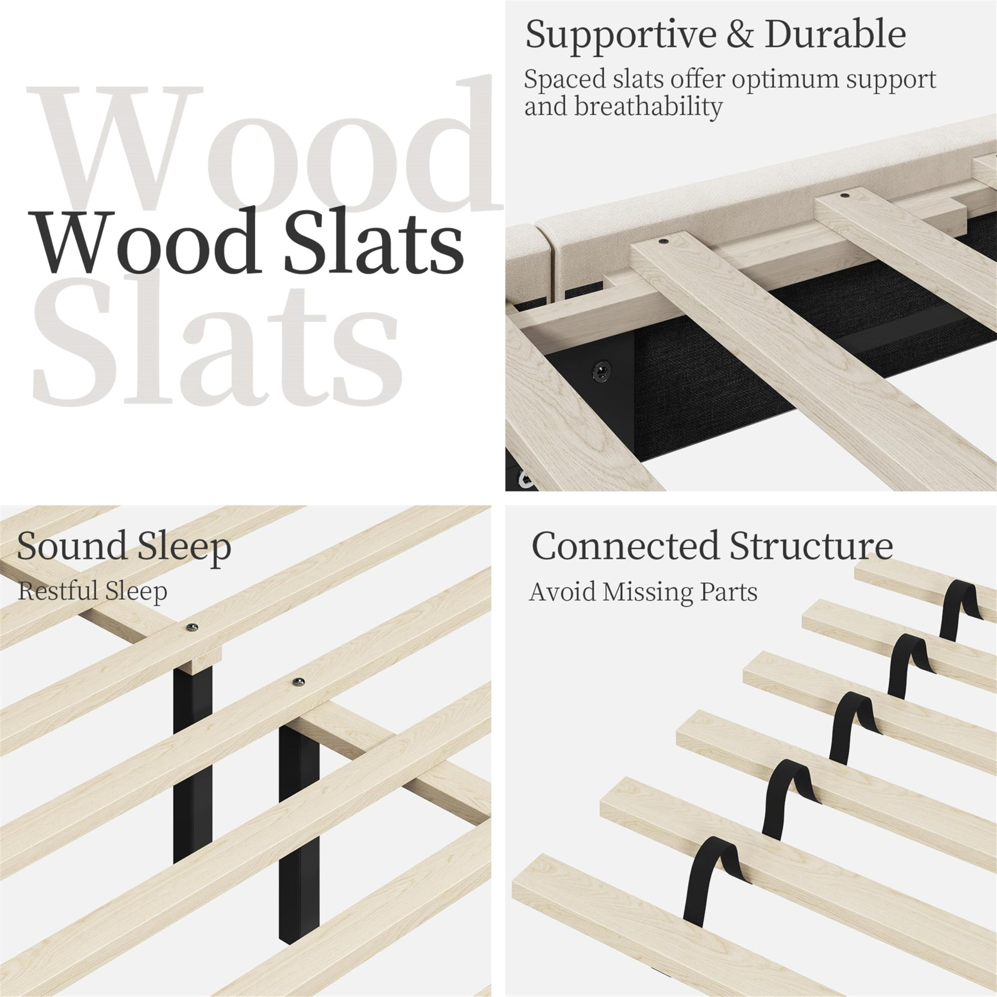 Yaheetech Queen Bed Frame Upholstered Platform Bed with Wing Side/Wooden Slat Support/Tufted Headboard with Wing Side/Mattress Foundation/No Box Spring Needed,Beige Queen Bed